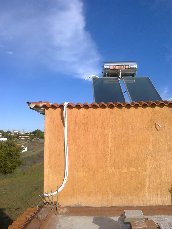 Από το υπάρχον ηλιακό θερμοσίφωνο το οποίο θα υποβοηθήσει η αντλία.
