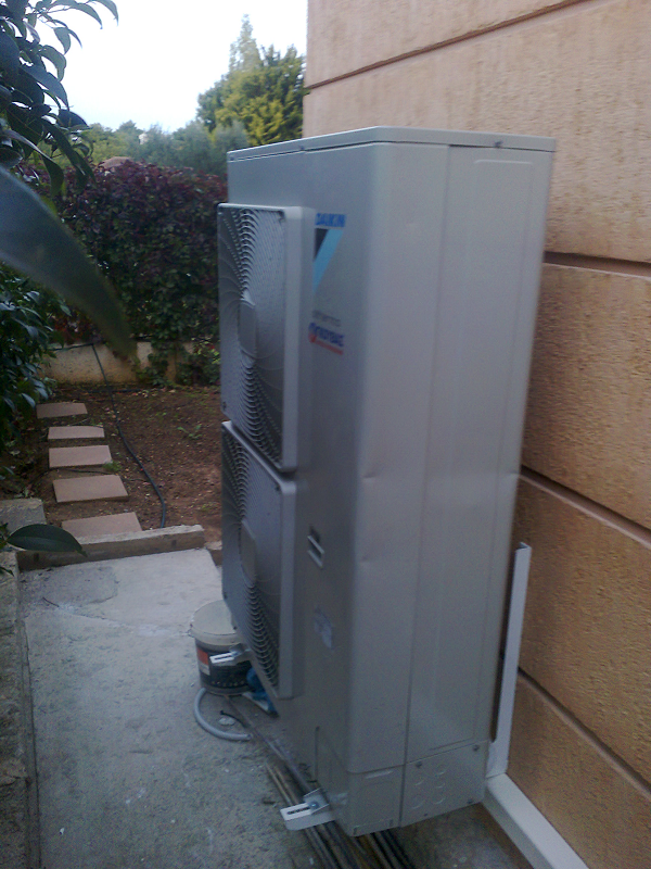 Εφαρμογή αντλίας θερμότητας DAIKIN ALTHERMA 14KW υψηλών θερμοκρασιών με δύο αυτονομίες και σώματα καλοριφέρ τύπου πάνελ στο υπάρχον μονοσωλήνιο δίκτυο.