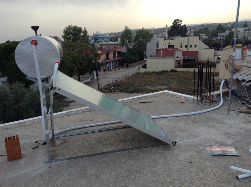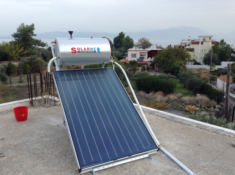 Ηλιακός θερμοσίφωνας Solarnet 160 λίτρων, επιιλεκτικός 2,62 τετραγωνικών μέτρων, για την κάλυψη των αναγκών του πλυντηρίου πιάτων.