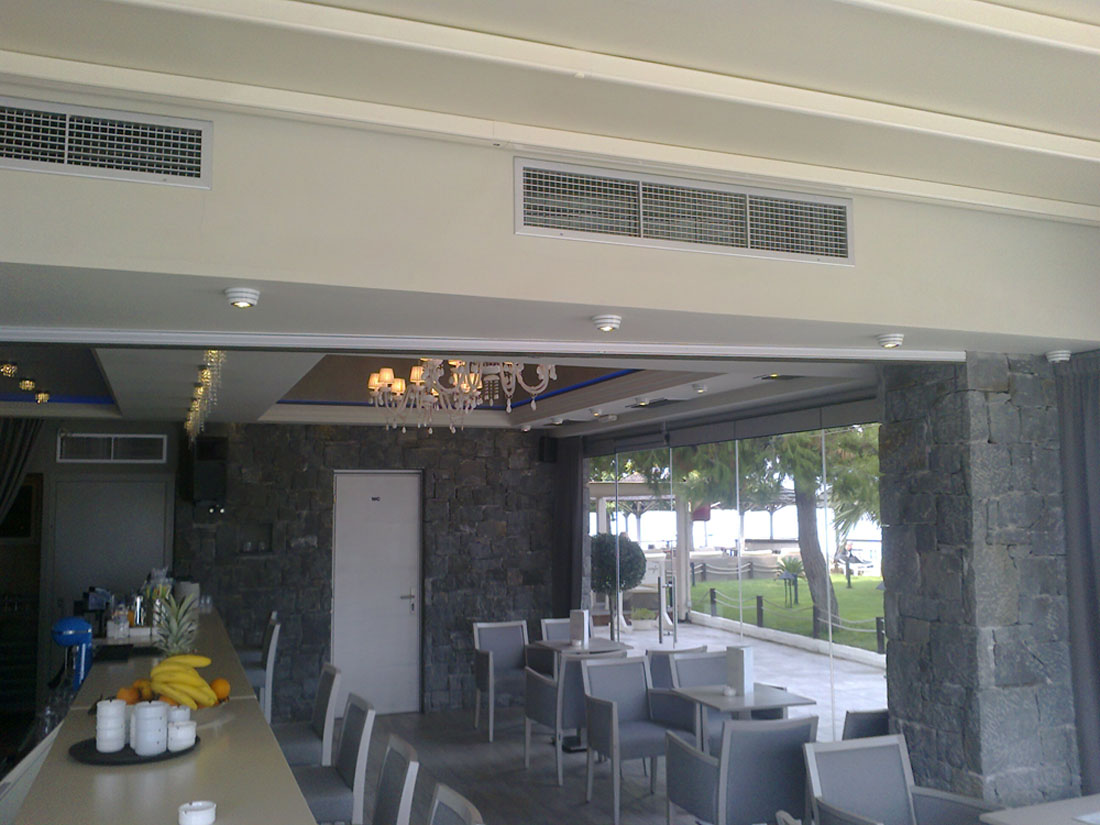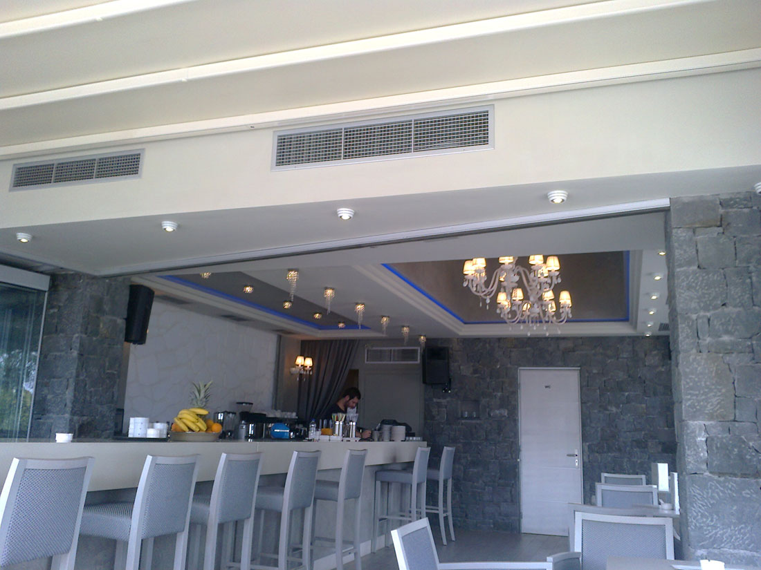 Χρησιμοποιήθηκαν 2 κλιματιστικές μονάδες καναλάτες MITSUBISHI ELECTRIC 48000 BTU έκαστη και