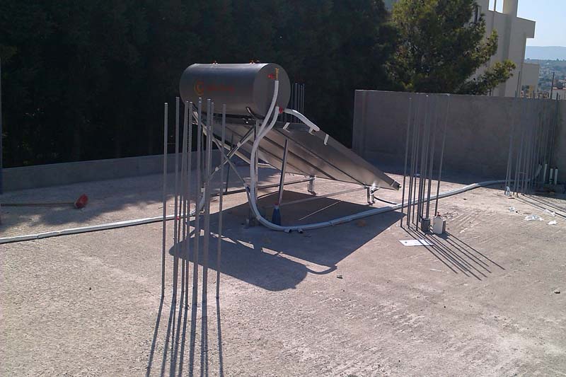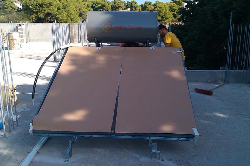 Ηλιακός Θερμοσίφωνας τριπλής ενέργειας Solar Flame 200 λίτρων, με 2 επιλεκτικούς συλλέκτες 4,2 τετραγωνικών μέτρων, υποβοηθούμενο από αντλία.